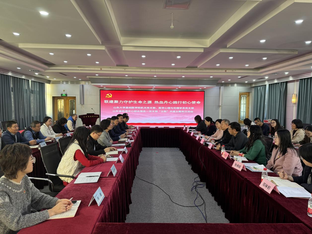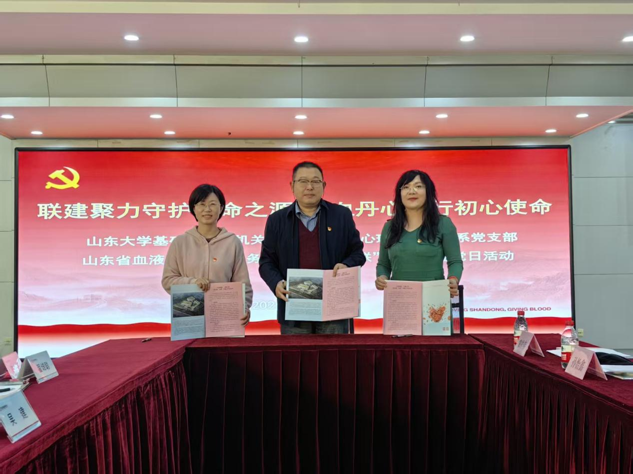11月13日,山东大学基础医学院机关党支部、医学心理学与伦理学系党支部联合山东省血液中心综合服务一支部开展“联建聚力守护生命之源 热血丹心践行初心使命”主题党日活动。基础医学院副处级组织员张爱国、山东省血液中心党委副书记李蓬出席活动。