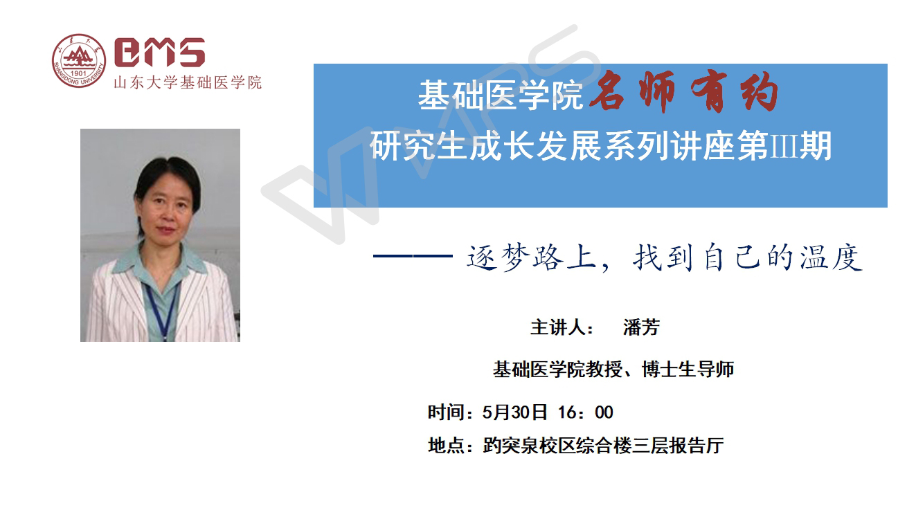 基础医学院名师有约--研究生成长发展系列讲座第Ⅲ期,时间:5月30日(周三)16:00