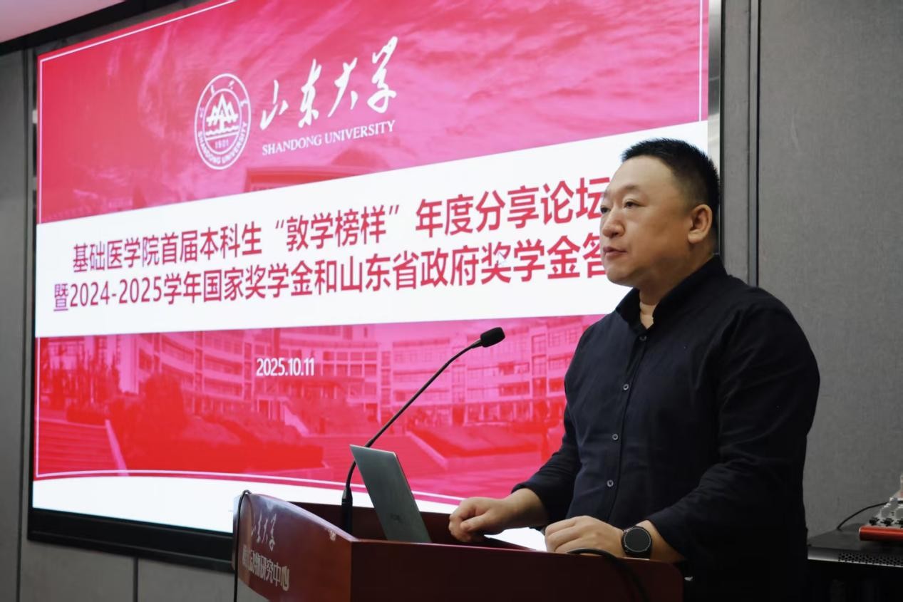 10月11日,基础医学院举办首届本科生“敦学榜样”年度分享论坛暨2024-2025学年国家奖学金、省政府奖学金答辩会。学院党委副书记姜昆,副院长刘尚明、院长助理李春阳、班主任代表、全体辅导员和学生代表担任评委,48名本科生参加答辩。