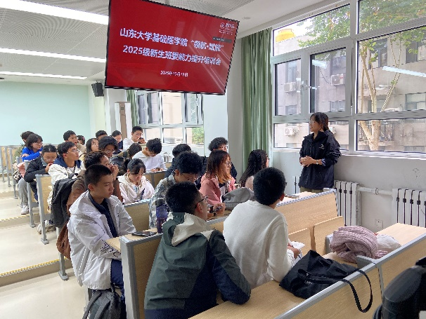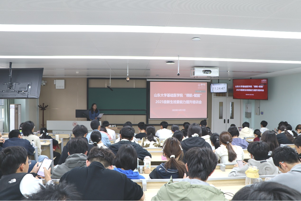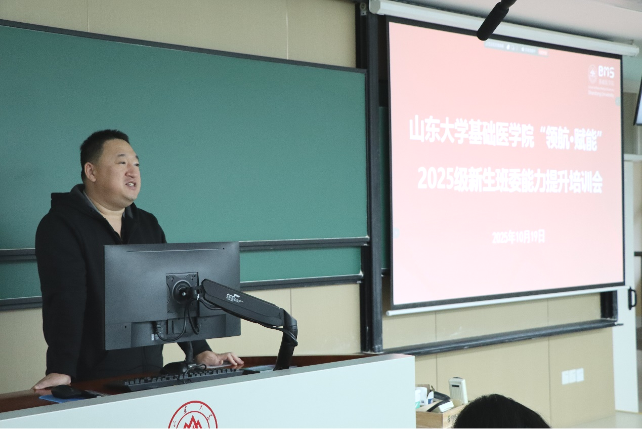 10月19日,基础医学院举办“领航·赋能”2025级新生班委能力提升培训会。本次培训会邀请党委学生工作部刘欣、党委宣传部贾富康担任主讲嘉宾,学院党委副书记姜昆出席培训会。培训会由2025级新生辅导员贺光伟主持。