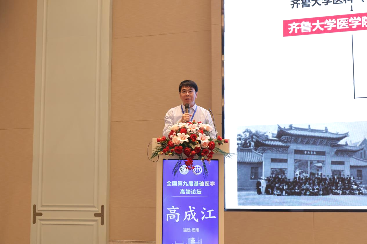 10月24日至26日,第九届全国基础医学高端(院长)论坛在福建医科大学召开。本次论坛由全国基础医学高端论坛理事会主办、福建医科大学基础医学院承办,吸引了来自全国各医学院校基础医学院的领导、专家和教师代表参会,围绕基础医学学科建设、人才培养与科研创新等核心议题展开深度交流。山东大学基础医学院院长高成江教授、党委书记马宏峰带队参加,高成江教授应邀作大会报告。