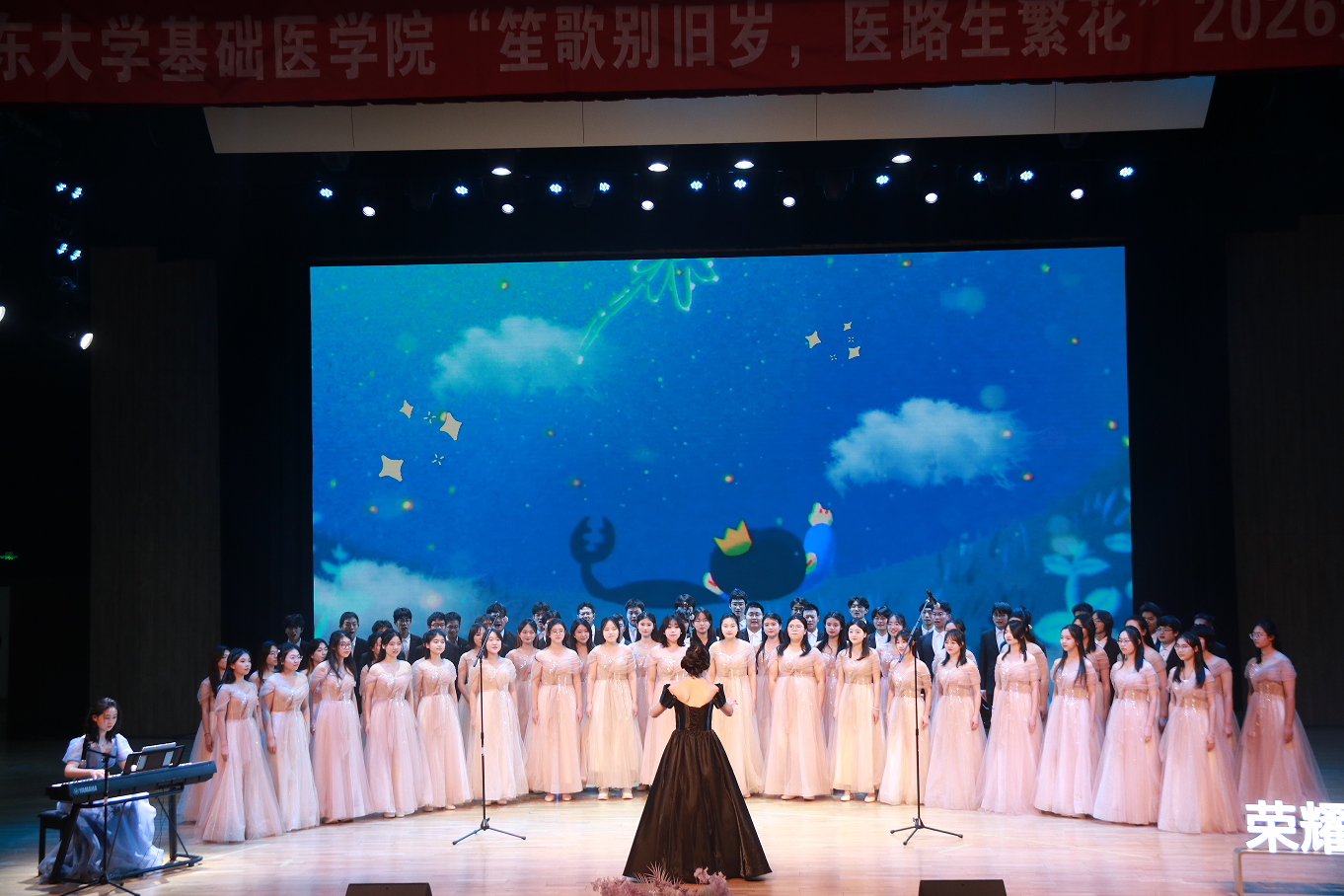 12月7日,基础医学院2026年元旦晚会在趵突泉校区举行。齐鲁医学院学生工作管理办公室副主任孙钰、基础医学院党委书记马宏峰,党委副书记张乃亭、姜昆,副处级组织员张爱国以及学院部分师生代表参加活动。