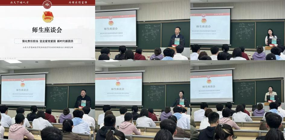 随后的师生座谈会上,老师们结合自身经历寄语青年,勉励大家勤学笃行、锤炼本领,努力成长为有理想、有本领、有担当的新时代医学青年。范金林对本次活动表示了高度肯定,结合“学无止境,气有浩然”的校训及“博施济众,广智求真”的齐鲁医学院院训,对同学们提出殷切希望;他鼓励全体团员坚定理想信念,积极向党组织靠拢,以党员标准严格要求自身,锤炼过硬品格;他强调团支部工作要辩证把握“雪中送炭”与“锦上添花”的有机统一关系,始终立足服务宗旨,既要打造工作亮点,更要切实关心关爱每一位团员,不断提升团支部凝聚力与战斗力,推动团支部建设高质量发展。