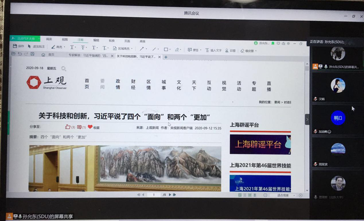 9月18日病原生物学系党支部召开学习“四个面向”主题党日活动。会议通过腾讯会议在线召开,学系全体职工党员和学生党员参加了会议,支部书记孙允东主持会议。