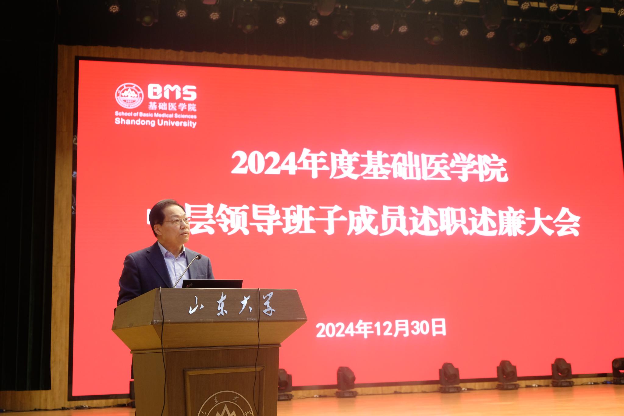 为加强领导班子和领导干部队伍建设,根据学校《关于做好2024年度中层领导班子和领导人员考核工作的通知》要求,12月30日下午,基础医学院在趵突泉校区梦迪音乐厅召开领导班子述职测评会议。会议由基础医学院党委书记马宏峰主持。