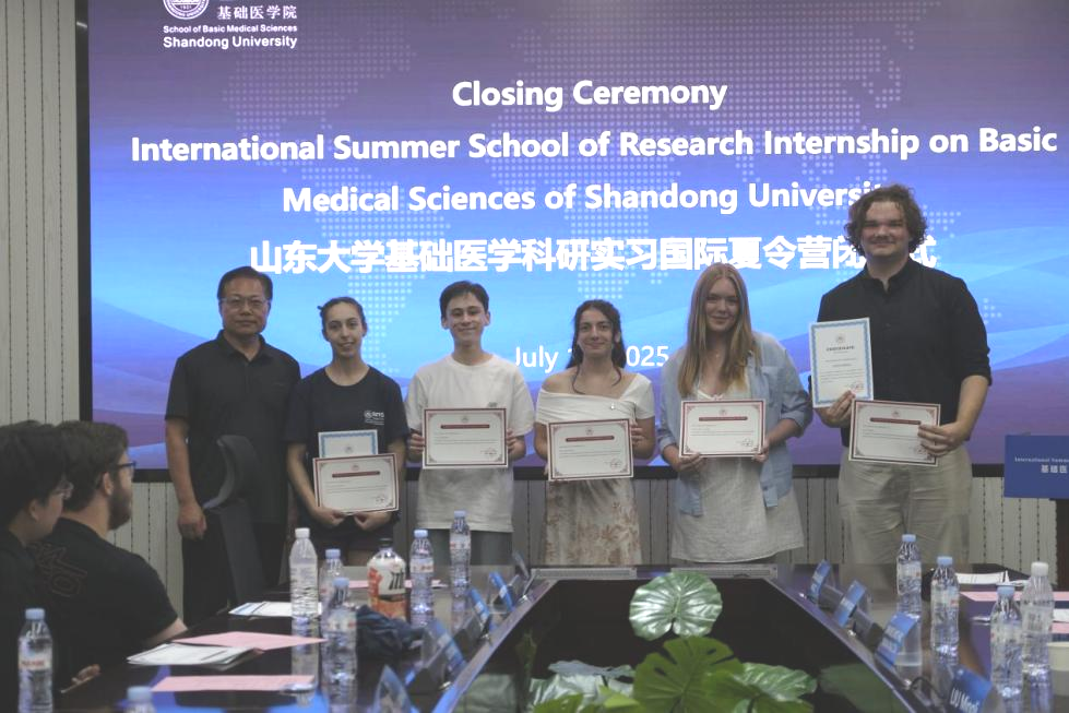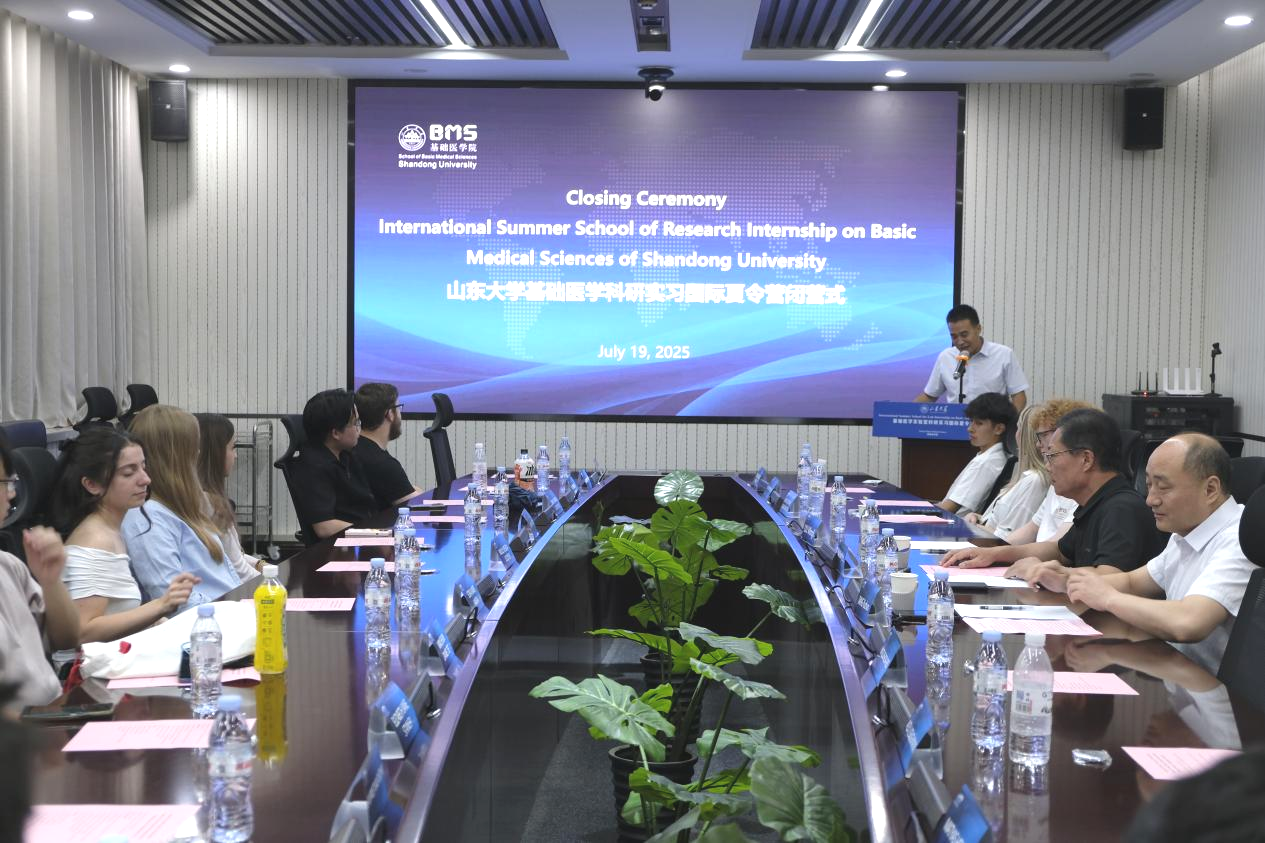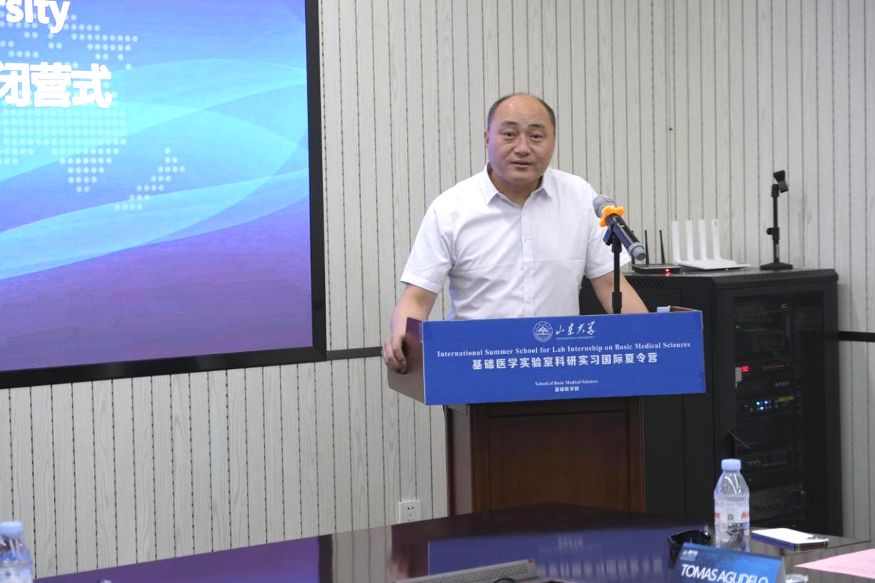 7月19日,山东大学基础医学实验室科研实习国际夏令营闭营仪式在趵突泉校区举行。基础医学院党委书记马宏峰、齐鲁医学院科研与国际交流办公室副主任汤煜春出席并致辞,全体营员及实验室代表参加。