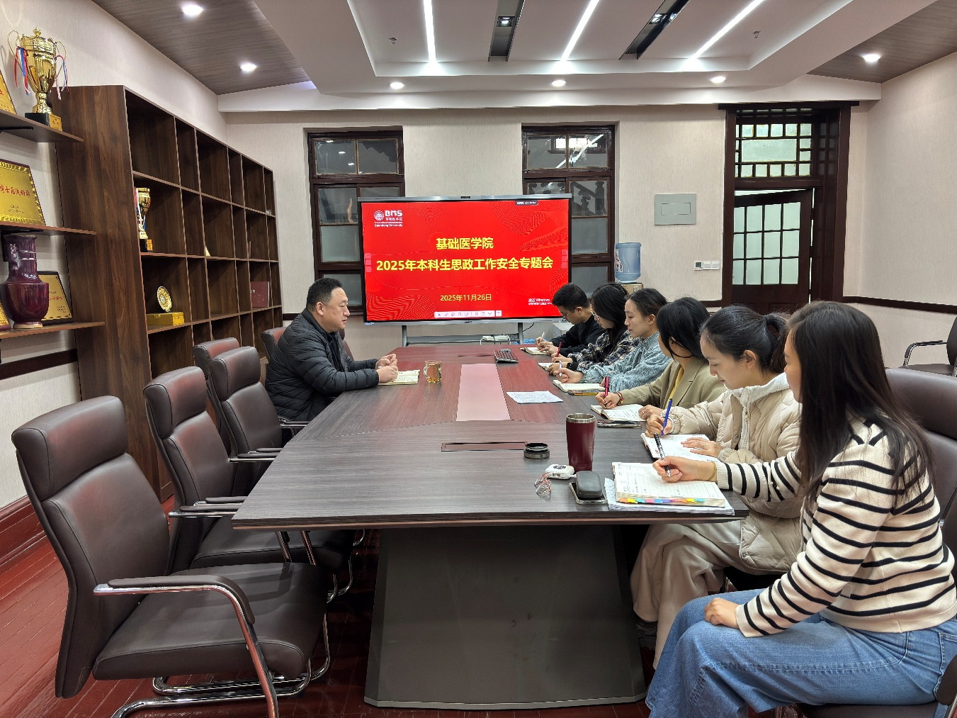 11月26日,基础医学院召开本科生思政工作安全专题会,围绕思政教育与安全管理重点任务展开部署,进一步筑牢育人安全防线。会议由学院党委副书记姜昆主持,全体本科生辅导员参加。
