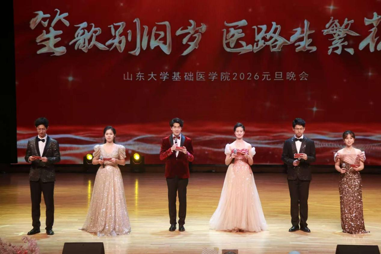 12月7日,基础医学院2026年元旦晚会在趵突泉校区举行。齐鲁医学院学生工作管理办公室副主任孙钰、基础医学院党委书记马宏峰,党委副书记张乃亭、姜昆,副处级组织员张爱国以及学院部分师生代表参加活动。