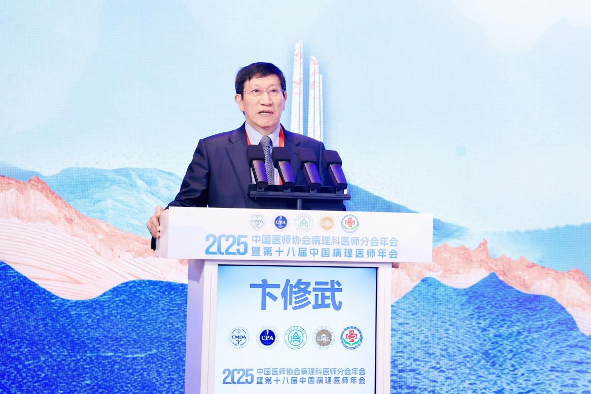 本次大会主席、中国科学院院士、中国医师协会病理科医师分会会长、陆军军医大学病理学研究所所长卞修武教授向莅临本次会议的各位领导、专家及病理同仁表示热烈欢迎和衷心感谢,同时向承办单位山东大学基础医学院病理学系/齐鲁医院病理科为承办此次年会所付出的努力和所做的工作表示感谢。