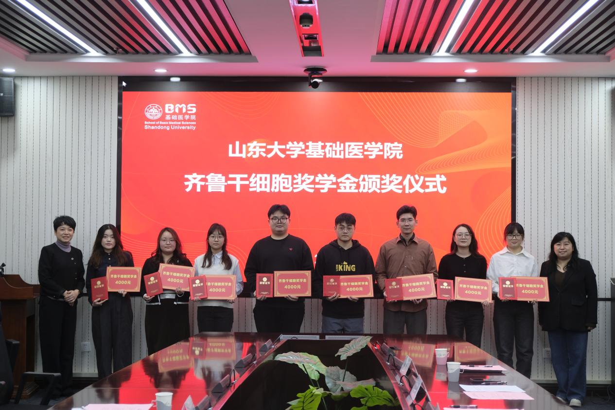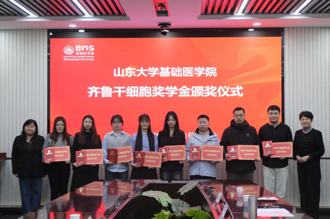 12月23日,基础医学院举办齐鲁干细胞奖学金颁奖仪式。基础医学院党委副书记张乃亭、副院长胡慧丽,山东省齐鲁干细胞工程有限公司(以下简称“齐鲁干细胞公司”)人力资源总监刘冰、研发中心对外合作经理马少丽等出席仪式。仪式由张乃亭主持。