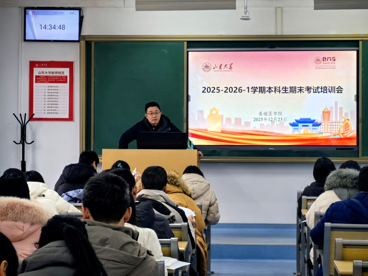 12月23日下午,基础医学院召开2025-2026学年第一学期期末考试考前培训会。全体监考人员参加本次培训,会议由学院副院长刘尚明主持。