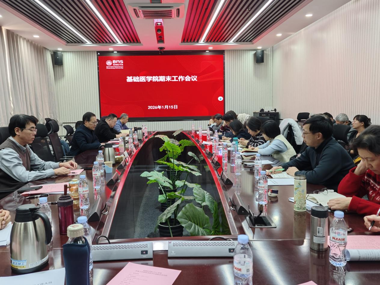 1月15日,基础医学院召开期末工作会议,全面总结2025年工作,部署寒假及2026年重点工作。学院党委书记马宏峰、院长高成江等领导班子成员出席会议,全体学系主任、党支部书记参加会议。