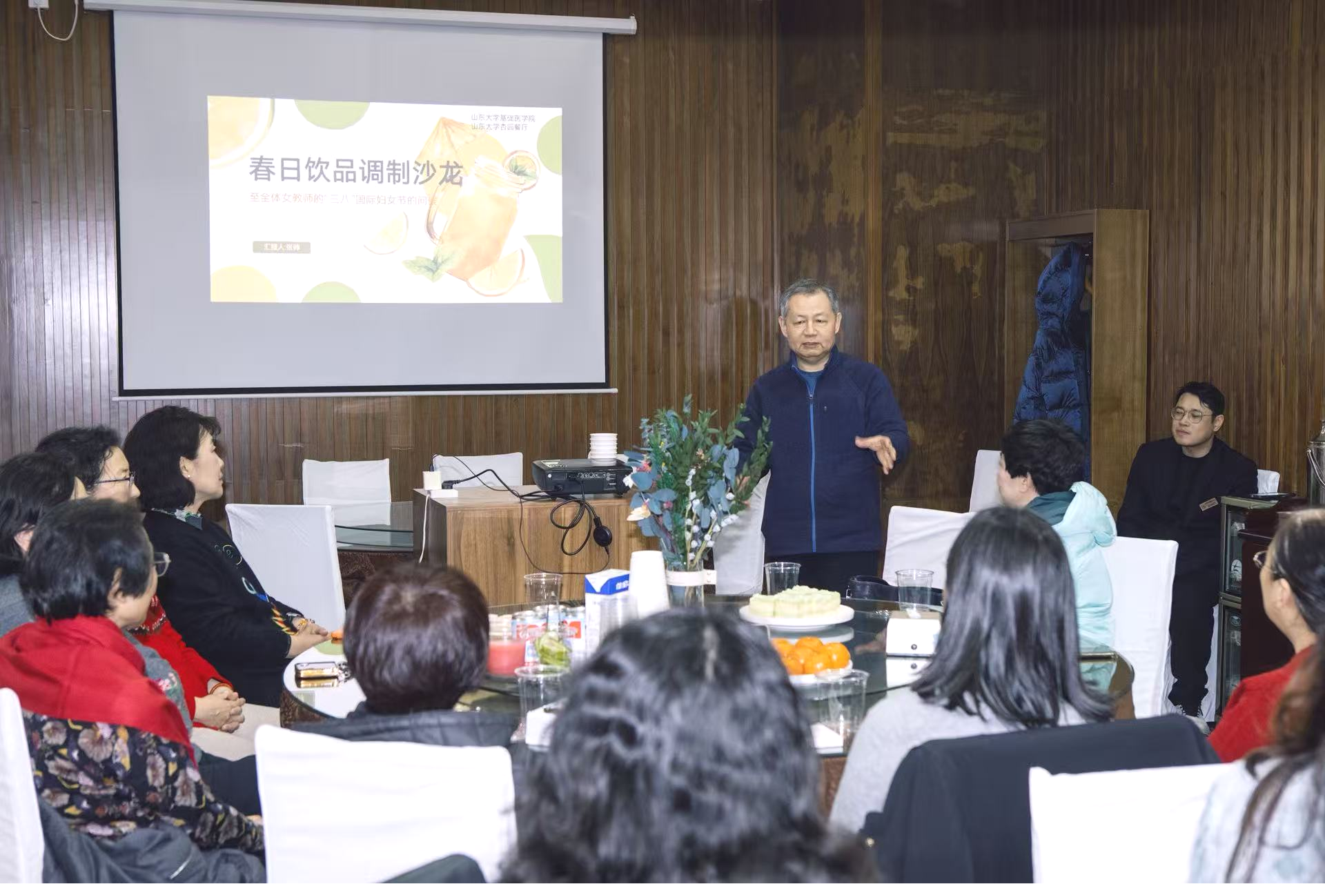 为庆祝第116个“三八”国际劳动妇女节,丰富女教职工精神文化生活,3月5日下午,基础医学院工会在趵突泉校区食堂举办“医韵匠心”系列第五期活动——“春日饮品调制沙龙”。活动以健康饮品调制为载体,融合科学知识与生活美学,让教职工们在动手实践中感受匠心之美,共度温馨节日。活动由基础医学院工会副主席刘海华主持。