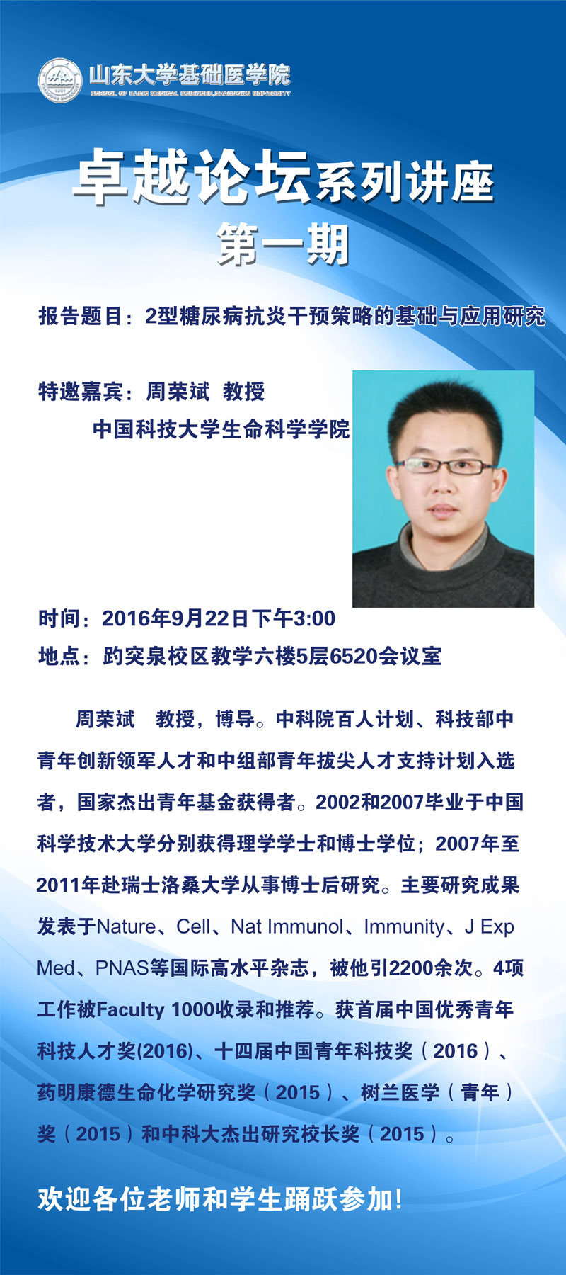 卓越论坛系列讲座第一期,题目:2型糖尿病抗炎干预策略的基础与应用研究