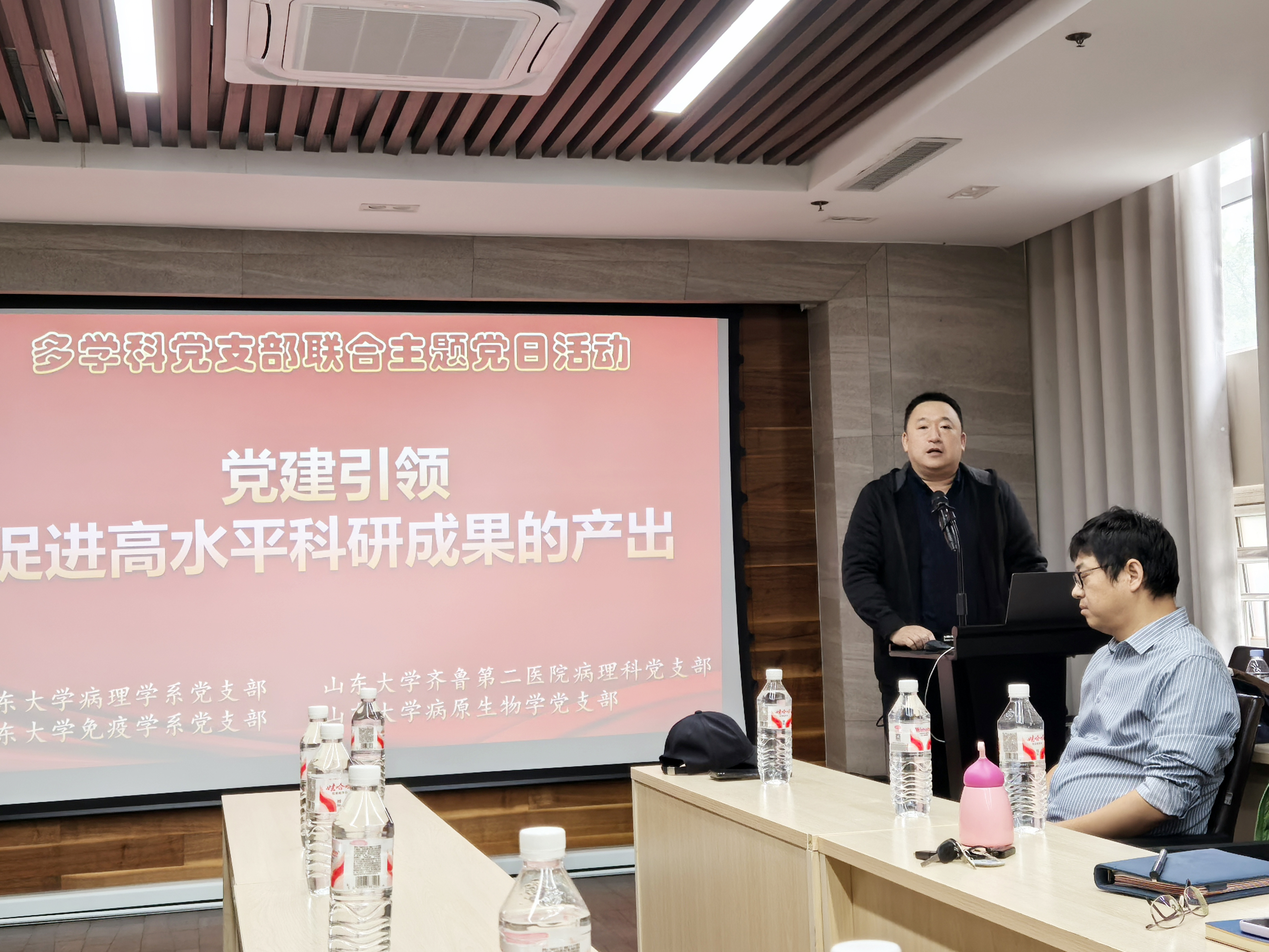 10月16日,病理学系党支部联合医学免疫学系党支部、病原生物学系党支部及齐鲁第二医院党支部举办以“党建引领高水平科研成果产出”为主题的主题党日活动,邀请病原生物学系唐伟教授作专题报告。学院党委副书记姜昆出席会议,四个党支部师生党员代表参加。会议由病理学系党支部组织委员吴晓娟主持。